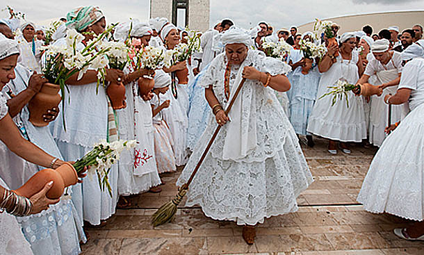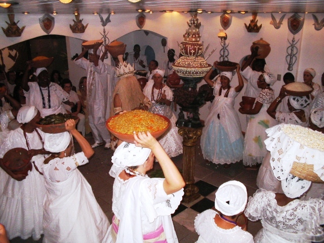 Un sincretismo temporale, per cui si “usano” le grandi feste cattoliche come occasioni per celebrare rituali afro: la festa di Santa Barbara o Yansã del 4 dicembre; 8 dicembre si celebra la festa della Conceição da Praia, vale a dire l’Immacolata Concezione, nel sincretismo religioso afro-brasiliano, la festa di Yemanjá; Processione del 1 gennaio di Buon Gesù dei Naviganti alla chiesa Conceição da Praia dove lo aspetta la Santa Vergine, sua madre. L’uno e l’altro, il Buon Gesù dei Naviganti e l’Immacolata Concezione, sono trasposizioni cattoliche del mito di Oxalá e Yemanjá, signora delle acque.