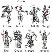 A prevalere nelle regioni africane interessate dalla tratta degli schiavi erano o il culto degli antenati, o quello degli spiriti della natura. Il primo – officiato dalle popolazioni bantu – data la sua fissità ad uno specifico luogo – non ha potuto sopravvivere nel Nuovo Mondo dopo lo strappo dalle terre natie. Nel frattempo, verso l’inizio del Settecento, arrivarono i popoli yoruba dal Golfo di Guinea. Questi, che conoscevano una struttura politica stratificata - ogni città era governata da un re, un obá - non avevano – essendo arrivati per ultimi – dimenticato del tutto la propria origine. Il pantheon yoruba era insomma quello che aveva più possibilità di affermarsi. E così fu. Gli Orixás sono entità che rappresentano gli antenati divinizzati e simboleggiano espressioni delle forze della natura, aspetti della cultura o della vita umana. Ognuno degli Orixás aveva in patria un luogo specifico per il culto e una comunità preposta esclusivamente alla sua venerazione. Per di più sembrano aver rispecchiato nelle relazioni che intercorrono tra di loro i conflitti esistenti tra i vari centri urbani della Nigeria: Oyó, la città di Xangô, Ketu, di Oxóssi, Abeokutá, centro del culto di Iemanjá, e Ilexá da dove provengono i culti di Oxum e Logun Edé. Tante caratterizzazioni non potevano certo essere riprodotte nelle piantagioni e in cattività. Occorreva organizzarsi e adattarsi. Tanto più che già nei porti di partenza etnie, lingue, tradizioni religiose si mischiavano in maniera estemporanea e confusa, dando vita a un meticciato originale e creativo, che avrà la propria apoteosi nelle Americhe, incontrando il Cattolicesimo e in parte le religioni degli indigeni.
